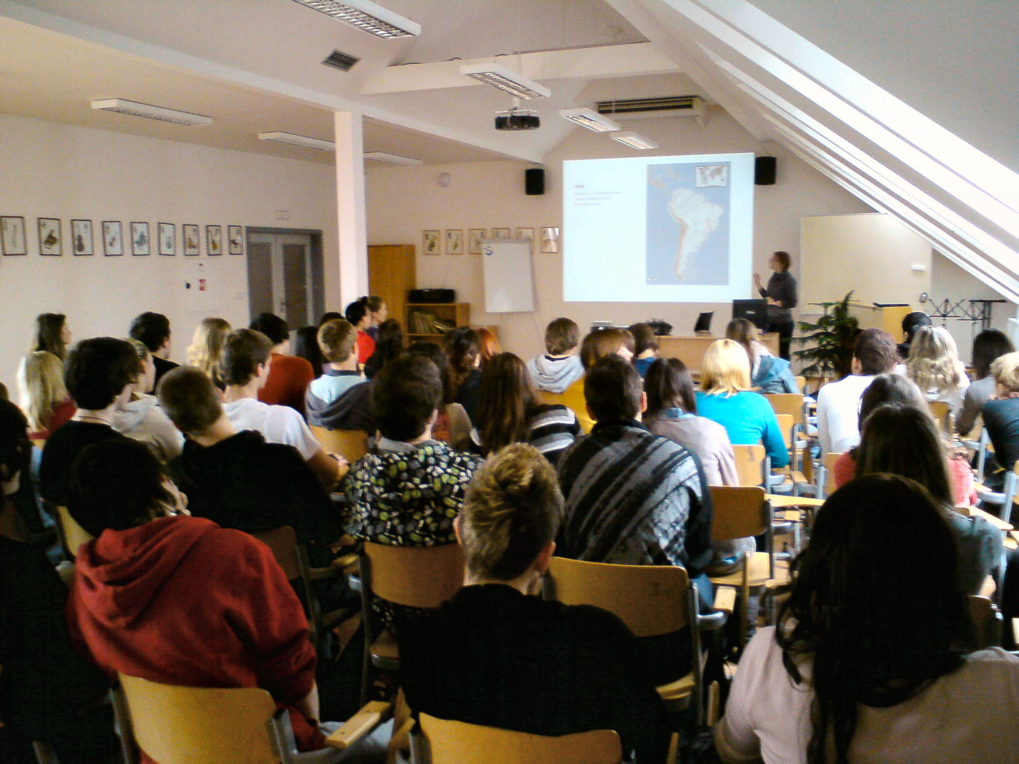 Dagmar Štafová, studentka lékařské fakulty Masarykovy univerzity a absolventka Gymnázia Jiřího Wolkera, hovořila o svých zkušenostech ze zahraniční stáže na universitě v Peru a o svých zážitcích při cestování po jižní Americe. Únor 2011.